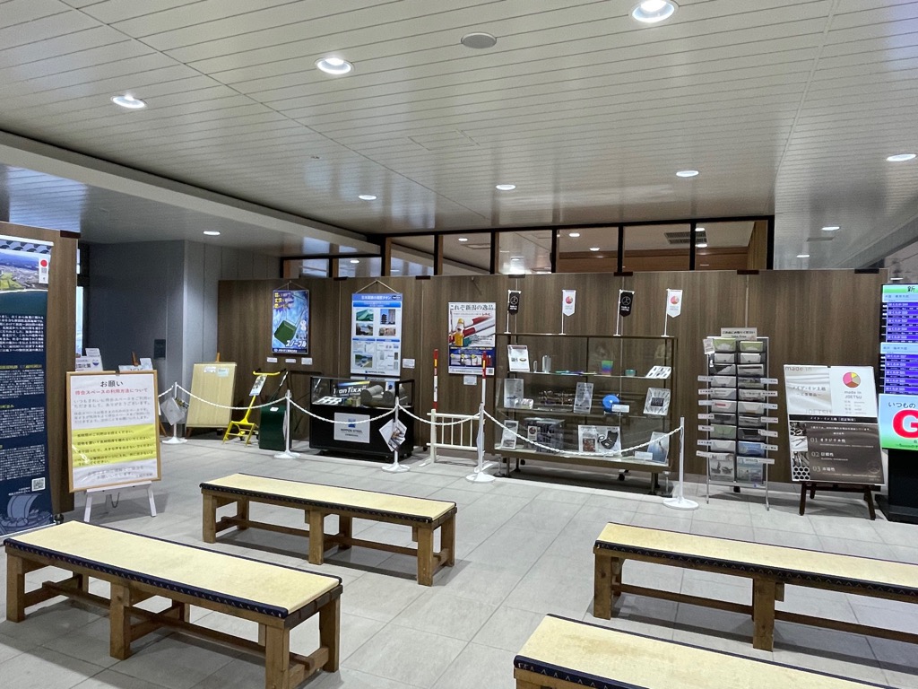 市内で製造された自慢の製品を実物展示やパネルでご紹介しています。 帰省や旅行で駅をご利用の際は、ぜひ足をとめてご覧ください。